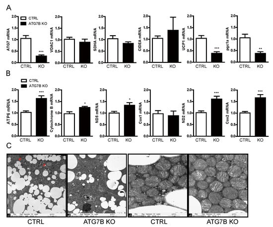 2.4. Increased Mitochondrial Content in BAT of ATG7B KO Mice