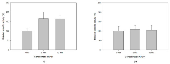 The effect of additional (a) NAD+ and (b) NADH on the specific activity of MfGM35E.