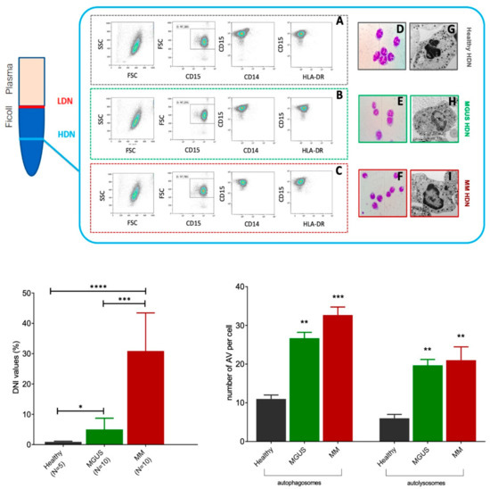 Puglisi, F.; Parrinello, N.L.; Giallongo, C.; Cambria, D.; Camiolo, G.; Bellofiore, C.; Conticello, C.; Del Fabro, V.; Leotta, V.; Markovic, U.; et al. Plasticity of High-Density Neutrophils in Multiple Myeloma is Associated with Increased Autophagy Via STAT3. Int. J. Mol. Sci. 2019, 20, 3548. https://doi.org/10.3390/ijms20143548