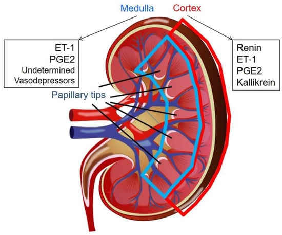 - Thomas, C.J.; Woods, R.L.; Evans, R.G.; Alcorn, D.; Christy, I.J.; Anderson, W.P. Evidence for a renomedullary vasodepressor hormone. Clin. Exp. Pharmacol. Physiol. 1996, 23, 777–785. [Google Scholar] [CrossRef] [PubMed]