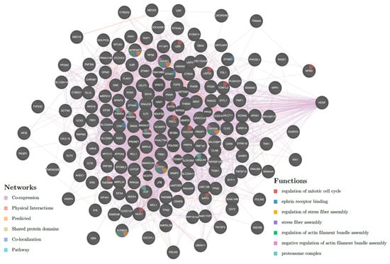 - Szklarczyk, D.; Morris, J.H.; Cook, H.; Kuhn, M.; Wyder, S.; Simonovic, M.; Santos, A.; Doncheva, N.T.; Roth, A.; Bork, P.; et al. The STRING database in 2017: Quality-controlled protein-protein association networks, made broadly accessible. Nucleic Acids Res. 2017, 45, D362–D368. [Google Scholar] [CrossRef] [PubMed]