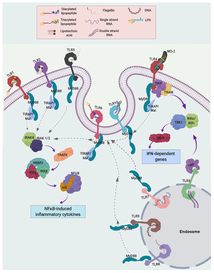 2.1. Toll-Like Receptors: Structures and Signaling Pathways