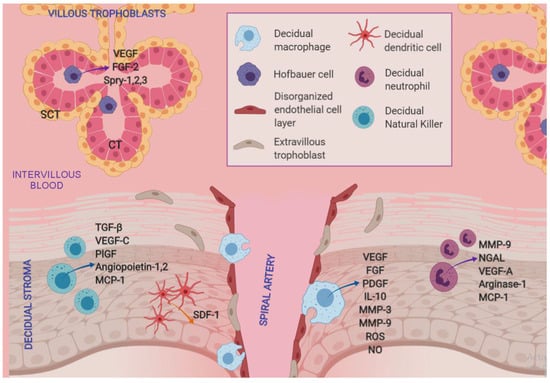 - Ning, F.; Liu, H.; Lash, G.E. The Role of Decidual Macrophages During Normal and Pathological Pregnancy. Am. J. Reprod. Immunol. 2016, 75, 298–309. [Google Scholar] [CrossRef] [PubMed]