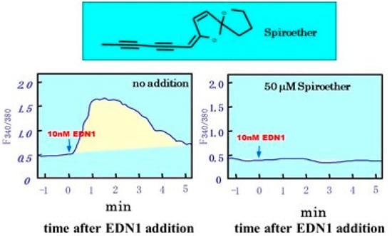 Inhibitory effects of spiroether on EDN1 induced intracellular calcium mobilization [].