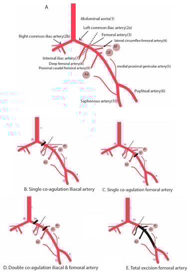 2.3.1. Single Electrocoagulation or Ligation of Femoral Artery