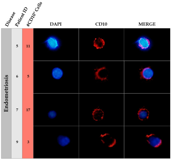 - Onda, T.; Ban, S.; Shimizu, M. CD10 is useful in demonstrating endometrial stroma at ectopic sites and in confirming a diagnosis of endometriosis. J. Clin. Pathol. 2003, 56, 79. [Google Scholar] [CrossRef][Green Version]