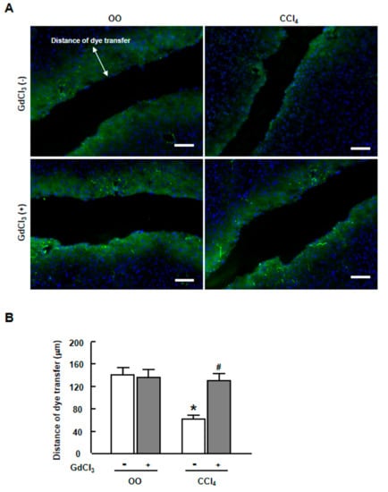 2.3. GdCl3 Restored the Functional GJIC in Injured Liver of CCl4-Treated Mice