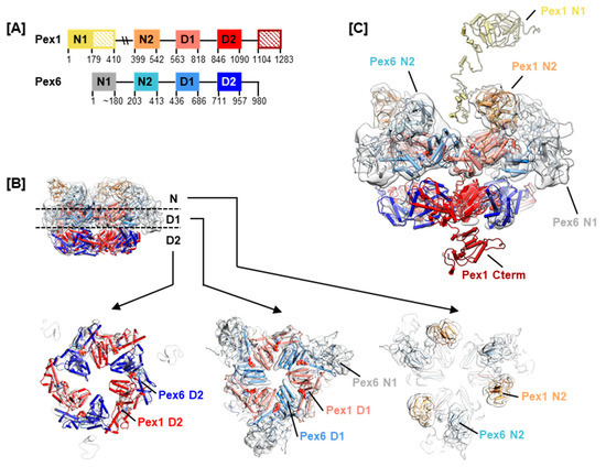 - Blok, N.B.; Tan, D.; Wang, R.Y.-R.; Penczek, P.A.; Baker, D.; DiMaio, F.; Rapoport, T.A.; Walz, T. Unique double-ring structure of the peroxisomal Pex1/Pex6 ATPase complex revealed by cryo-electron microscopy. Proc. Natl. Acad. Sci. USA 2015, 112, E4017–E4025. [Google Scholar] [CrossRef]
