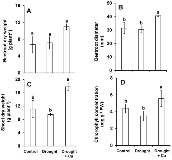 Calcium Application Enhances Drought Stress Tolerance in Sugar Beet and Promotes Plant Biomass and Beetroot Sucrose Concentration