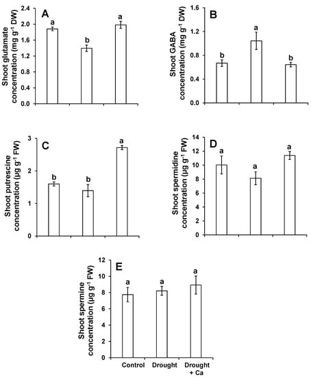 - Podlešáková, K.; Ugena, L.; Spíchal, L.; Doležal, K.; De Diego, N. Phytohormones and polyamines regulate plant stress responses by altering GABA pathway. New Biotechnol. 2019, 48, 53–65. [Google Scholar] [CrossRef]