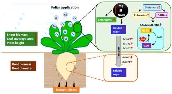 Hosseini, S.A.; Réthoré, E.; Pluchon, S.; Ali, N.; Billiot, B.; Yvin, J.-C. Calcium Application Enhances Drought Stress Tolerance in Sugar Beet and Promotes Plant Biomass and Beetroot Sucrose Concentration. Int. J. Mol. Sci. 2019, 20, 3777. https://doi.org/10.3390/ijms20153777
