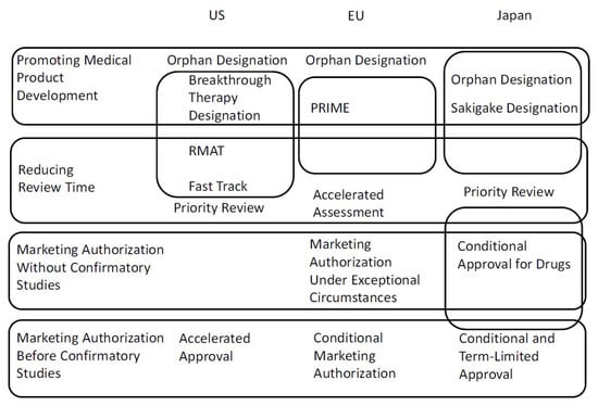 EMA; FDA; PMDA; conditional approval; accelerated approval; Sakigake; breakthrough; PRIME; RMAT 1. Introduction