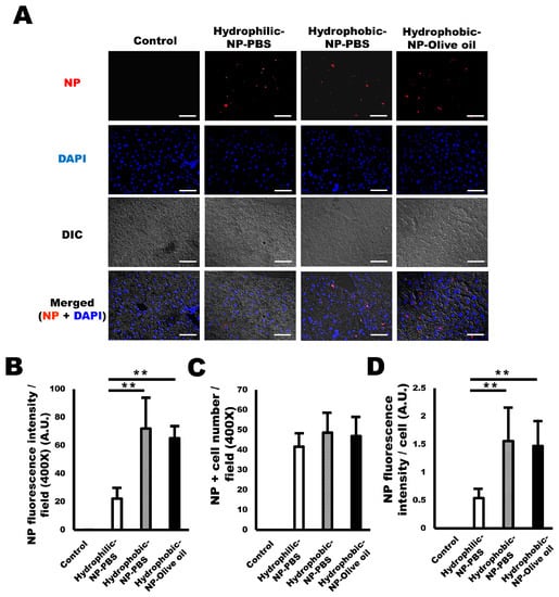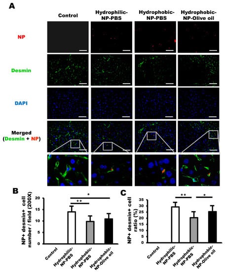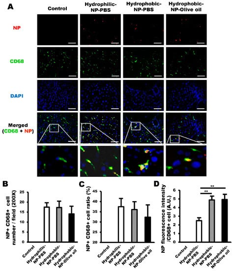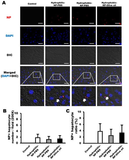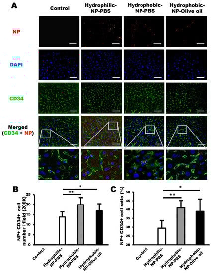 2.3. No Difference Existed in the Ratio of NPs Absorbed by Kupffer Cells among Hydrophilic-NP-PBSTreated Liver, Hydrophobic-NP-PBS Treated Liver, and Hydrophobic-NP-Olive Oil Treated Liver