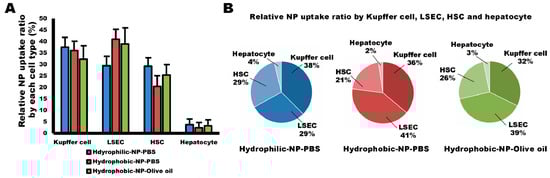 2.8. Relative Ratio of NP Uptake by Kupffer Cells, LSECs, HSCs, and Hepatocytes Based on Surface Modification of Silica NPs