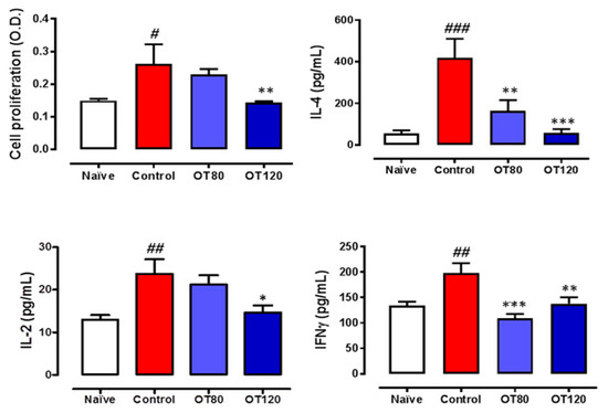 4.8. Lymph Node Cells Isolation, Proliferation Assay and Cytokine Determination