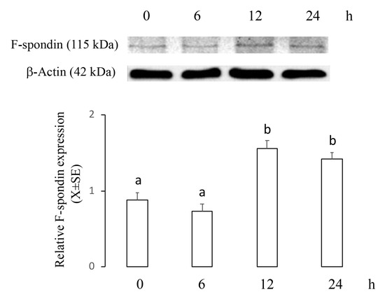 2.2. ME Increased mRNA and Protein Levels of F-Spondin in a Time–Course Manner