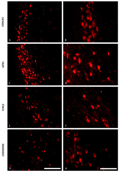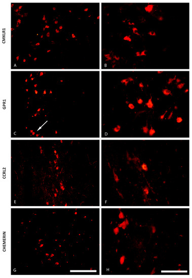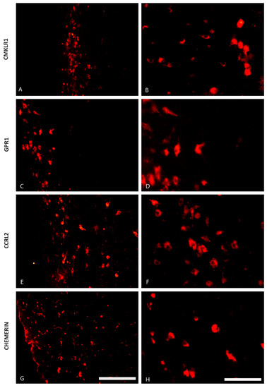 2.1. The Distribution of CHEM, CMKLR1, GPR1 and CCRL2 in the Porcine Hypothalamus