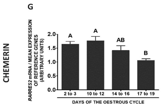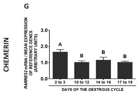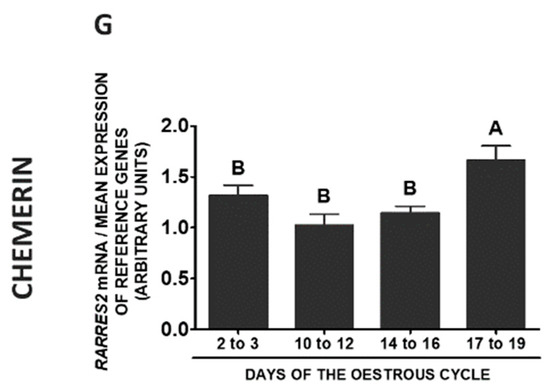 2.8. CHEM System Gene and Protein Expression in SME during the Oestrous Cycle