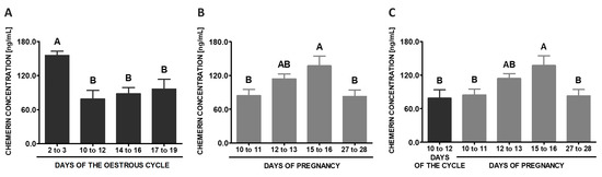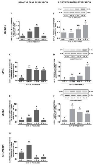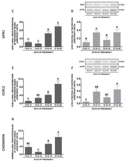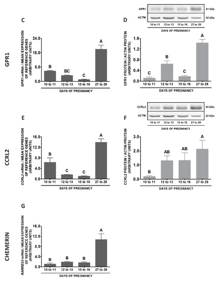 - Garces, M.F.; Sanchez, E.; Acosta, B.J.; Angel, E.; Ruiz, A.I.; Rubio-Romero, J.A.; Dieguez, C.; Nogueiras, R.; Caminos, J.E. Expression and regulation of chemerin during rat pregnancy. Placenta 2012, 33, 373–378. [Google Scholar] [CrossRef]