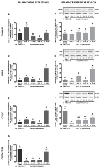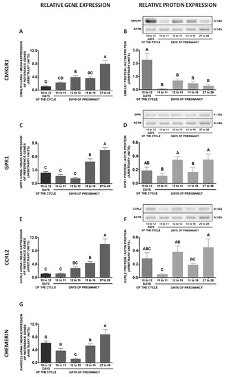 2.9. CHEM System Gene and Protein Expression in SME during Pregnancy