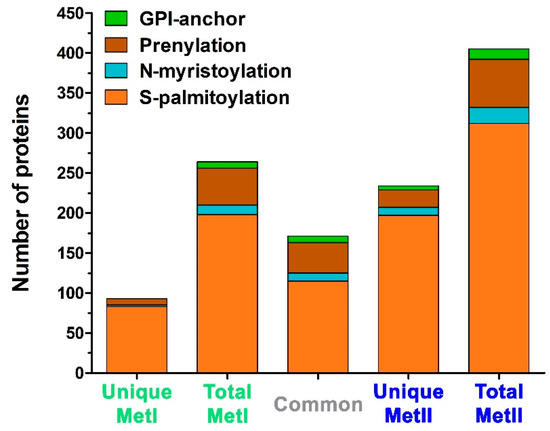 - Levental, I.; Grzybek, M.; Simons, K. Greasing their way: Lipid modifications determine protein association with membrane rafts. Biochemistry 2010, 49, 6305–6316. [Google Scholar] [CrossRef]