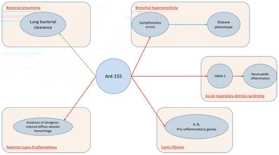 The mechanisms involving antagomiR-155 in lung conditions are displayed in Figure 3.