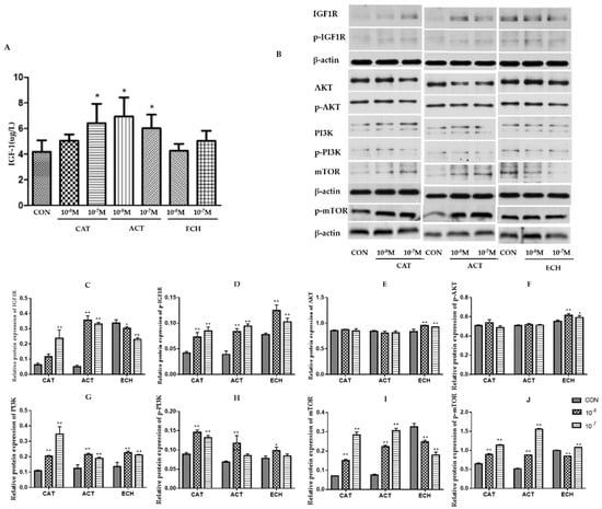 2.6. CAT, ACT, and ECH are Involved in Regulation of IGF-1/PI3K/mTOR in MC3T3-E1 Cells