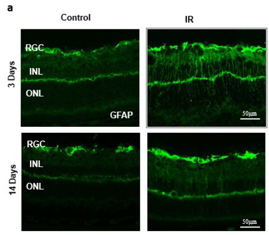 2.2. Ocular Ischemia-Triggered Activation of Glial Müller Cells That Was Sustained for 14 Days