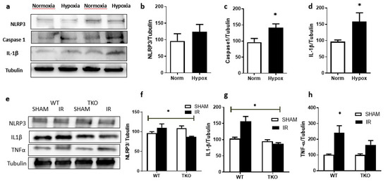 2.4. IR Injury and Hypoxia-Triggered NLRP3 Inflammasome Activation and IL-1β Expression