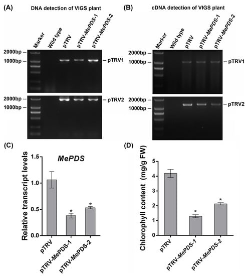 - Hiriart, J.B.; Aro, E.M.; Lehto, K. Dynamics of the VIGS-mediated chimeric silencing of the Nicotiana benthamiana ChlH gene and of the tobacco mosaic virus vector. Mol. Plant Microbe Interact. 2003, 16, 99–106. [Google Scholar] [CrossRef] [PubMed]