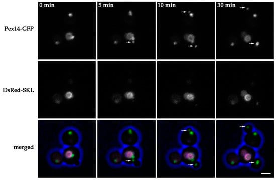 - Motley, A.M.; Hettema, E.H. Yeast peroxisomes multiply by growth and division. J. Cell Biol. 2007, 178, 399–410. [Google Scholar] [CrossRef]