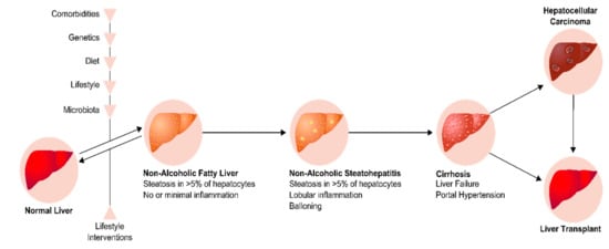 - McPherson, S.; Hardy, T.; Henderson, E.; Burt, A.D.; Day, C.P.; Anstee, Q.M. Evidence of NAFLD progression from steatosis to fibrosing-steatohepatitis using paired biopsies: Implications for prognosis and clinical management. J. Hepatol. 2015, 62, 1148–1155. [Google Scholar] [CrossRef]