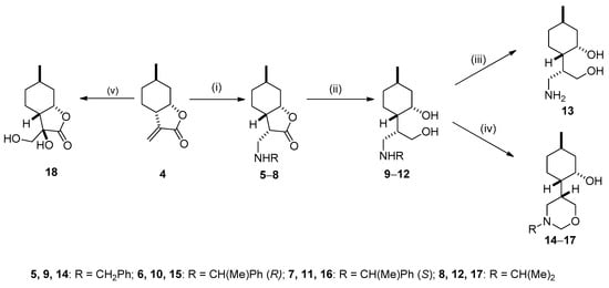 - Le, T.; Bérdi, P.; Zupkó, I.; Fülöp, F.; Szakonyi, Z. Synthesis and transformation of (-)-isopulegol-based chiral β-aminolactones and β-aminoamides. Int. J. Mol. Sci. 2018, 19, 3522. [Google Scholar] [CrossRef]