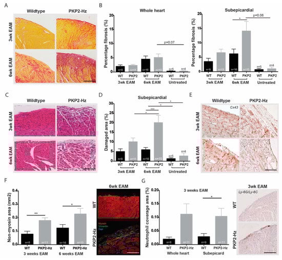 2.5. PKP2 Haploinsufficiency Alters the Cardiac Fibrotic and Inflammatory Response to Auto-Immune Myocarditis