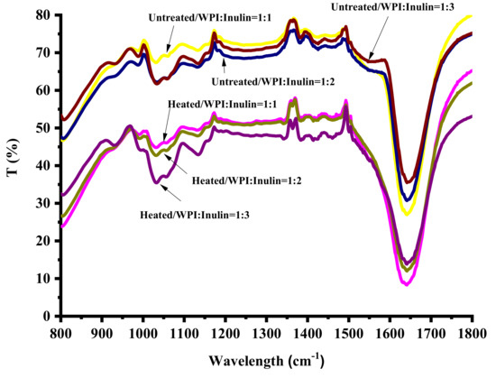 2.7. Changes in Structures of Whey Protein and Inulin Mixture after Heating