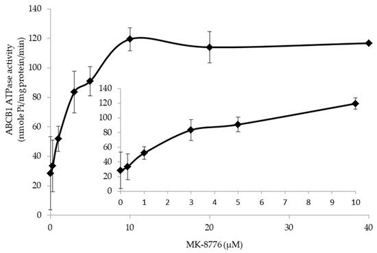 The ATPase activity of P-gp upon MK-8776 (0–40 μM) was tested by the PREDEASY ATPase Kits (TEBU-BIO nv, Boechout, Belgium) according to manufacturer’s instructions [46].