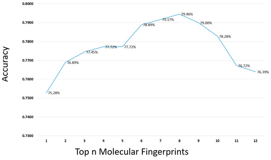 The selection of top n molecular fingerprints from the 12 molecular fingerprints by top 5 classifier.