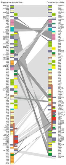 - Nevill, P.G.; Howell, K.A.; Cross, A.T.; Williams, A.V.; Zhong, X.; Tonti-Filippini, J.; Boykin, L.M.; Dixon, K.W.; Small, I. Plastome-wide rearrangements and gene losses in carnivorous Droseraceae. Genome Biol. Evol. 2019, 11, 472–485. [Google Scholar] [CrossRef]