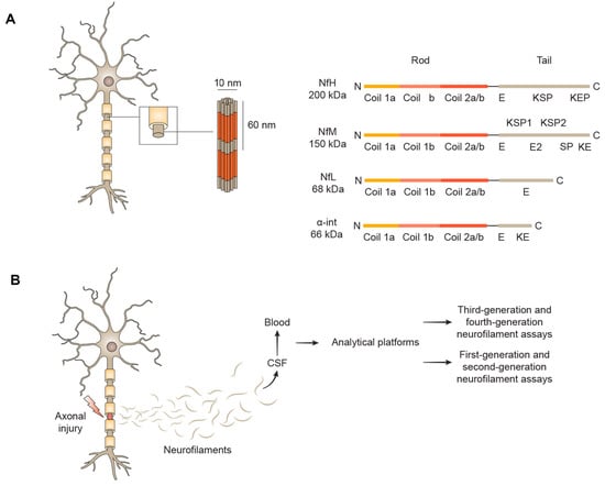 - Khalil, M.; Teunissen, C.E.; Otto, M.; Piehl, F.; Sormani, M.P.; Gattringer, T.; Barro, C.; Kappos, L.; Comabella, M.; Fazekas, F.; et al. Neurofilaments as biomarkers in neurological disorders. Nat. Rev. Neurol. 2018, 14, 577–589. [Google Scholar] [CrossRef] [PubMed]