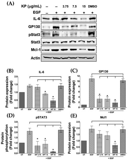 2.2. KP Inhibits EGF-Induced STAT3 Activation