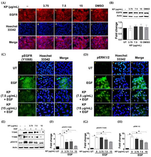 2.4. KP Inhibits EGF-Induced Activation of EGFR