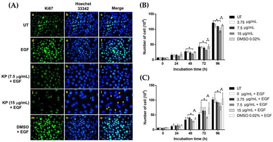 2.5. KP Exhibits Anti-Proliferative Effects over EGF Stimulation