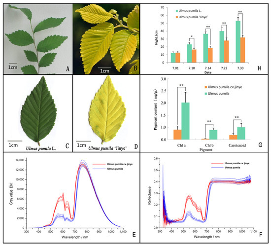 - Zhang, S.; Zuo, L.H.; Zhang, J.; Chen, P.F.; Wang, J.M.; Yang, M.S. Transcriptome analysis of Ulmus pumila ‘Jinye’ responses to different shading involved in chlorophyll metabolism. Tree Genet. Genomes 2017, 13, 64. [Google Scholar] [CrossRef]