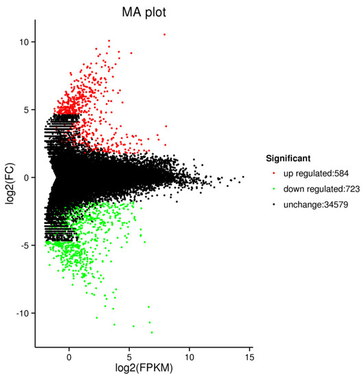 - Leng, N.; Dawson, J.A.; Thomson, J.A.; Ruotti, V.; Rissman, A.I.; Smits, B.M.G.; Haag, J.D.; Gould, M.N.; Ron, M.; Kendziorski, C. EBSeq: An empirical bayes hierarchical model for inference in RNA-seq experiments. Bioinformatics 2013, 29, 1035–1043. [Google Scholar] [CrossRef]