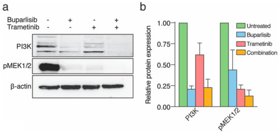 2.2. Treatment with Buparlisib and Trametinib Decreases Target Protein Expressions