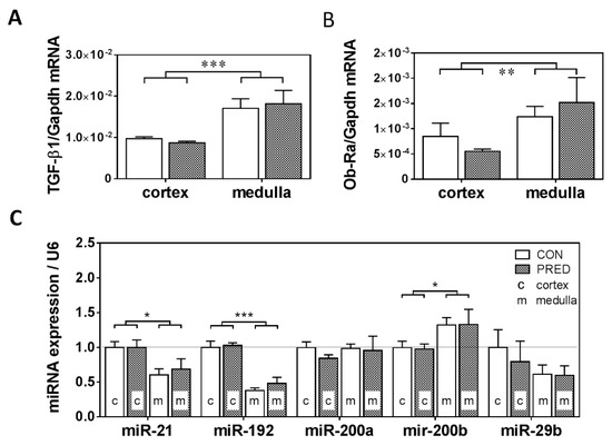 2.3. Known mRNA and miRNA Markers of Renal Fibrosis were Unaffected in PRED Rats