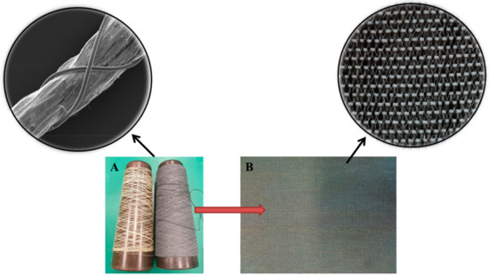 - Yalcinkaya, F.; Komarek, M.; Lubasova, D.; Sanetrnik, F.; Maryska, J. Producing antibacterial textile material by weaving PVB/CuO nanocomposite fiber covered yarn. Nanocon 2014, 6th International Conference 2015. Available online: http://nanocon2014.tanger.cz/en/view-list-of-papers/3255-producing-antibacterial-textile-material-by-weaving-pvb-cuo-nanocomposite-fiber-covered-yarn/ (accessed on 1 May 2019).