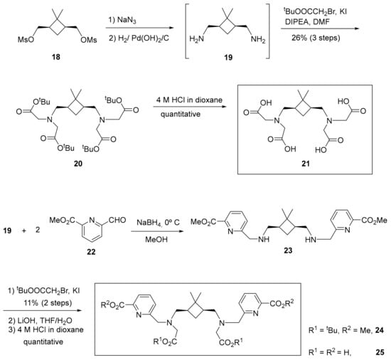3.2.15. Synthesis of 6,6′-[{2,2-dimethylcyclobutane-1,3-diylbis[(carboxymethyl) azane methylene diyl]}- bis(methylene)] dipicolinic acid (25)