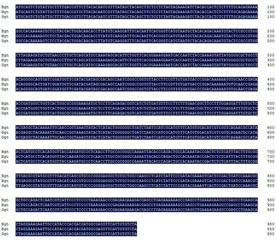 Bgt and Bgh are the two main formae speciales of B. graminis, and genome-wide analyses have indicated that almost 92% of the genes in Bgt and Bgh are homologous [27,28]. BEC1019 has been demonstrated to play key roles in the development of resistance to Bgh in barley [33,34]. Accordingly, we searched for a gene in Bgt homologous to the BEC1019 gene of Bgh. To identify the BEC1019 homolog in Bgt, primers designed based on Bgh BEC1019 and Bgt DNA were used to clone the candidate gene. The sequencing results showed that the nucleotide and protein sequences (without signal peptides) of Bgt BEC1019 are completely identical to those of Bgh BEC1019 (Figure 1). To analyze the conservation of BEC1019 in the diverse fungi, several major plant pathogens and one oomycete were selected to clone the homologs, including Puccinia striiformis f. sp. tritici, Pst (causes wheat stripe rust), Fusarium pseudograminearum, Fp (causes wheat crown rot disease), F. graminearum, Fg (causes wheat head blight and crown rot), Bipolaris sorokiniana, Bs (causes wheat root rot), Phytophthora infestans, Pi (causes Solanaceae plants late blight), and Verticillium dahliae, Vd (cause cotton and Solanaceae plants Verticillium wilt). Interestingly, BEC1019 homologs in biotrophic (Pst), hemi-biotrophic (Pi), and necrotrophic (Ggt, Fp, Fg, and Vd) pathogens are identical to those in Bgh (Accession No. AHZ59730.1) (Figure S1). The exception among the pathogens we examined was Bs, whose amino acid sequence showed 91.46% identity to that of Bgh (Figure S1).