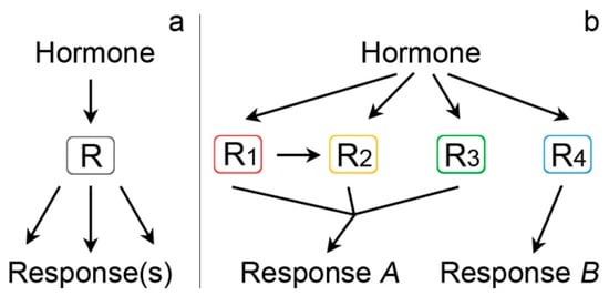 Model of conventional hormonal input via a single receptor (R) leading to downstream responses (a); model of SA multinodal input via multiple SABPs acting as independent receptors (b). Some receptors in model B may be in a functional connection (e.g., a putative SA-binding TRX acting on NPR1) and act in a single reception pathway.